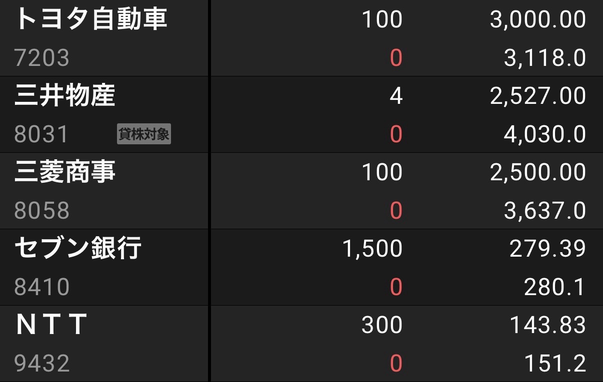 今週は、貸株の配当相当と金利が入ってきました。また3,000円で注文していたトヨタ自動車をうまく拾えました。