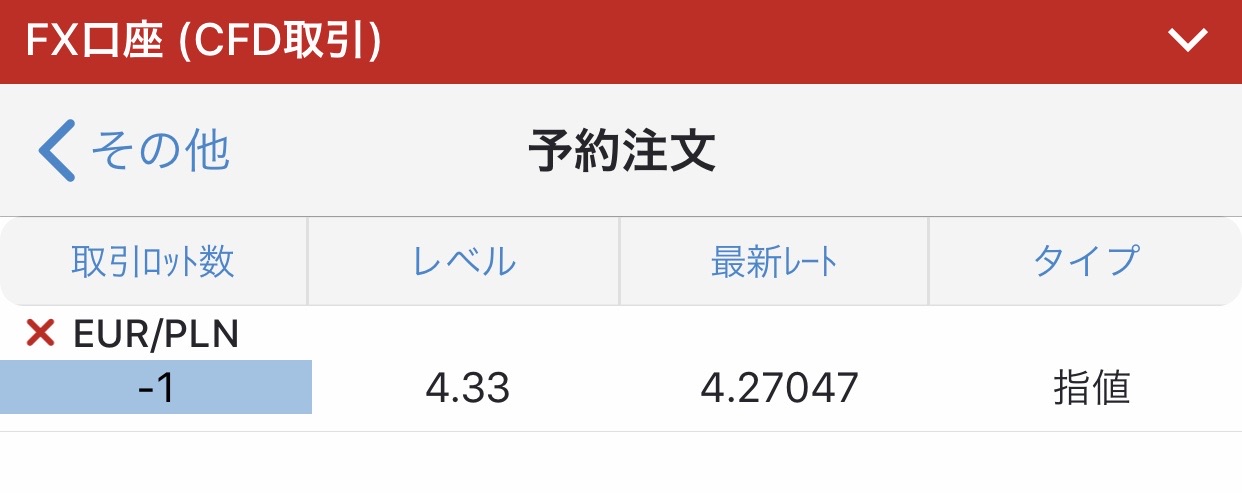 運用ルールは、最小ロット数の違いから若干変更し「EUR/PLNの数値が4.33を超えたら売りポジションを10000通貨もち、4.28迄下がったら決済」に変更しました。