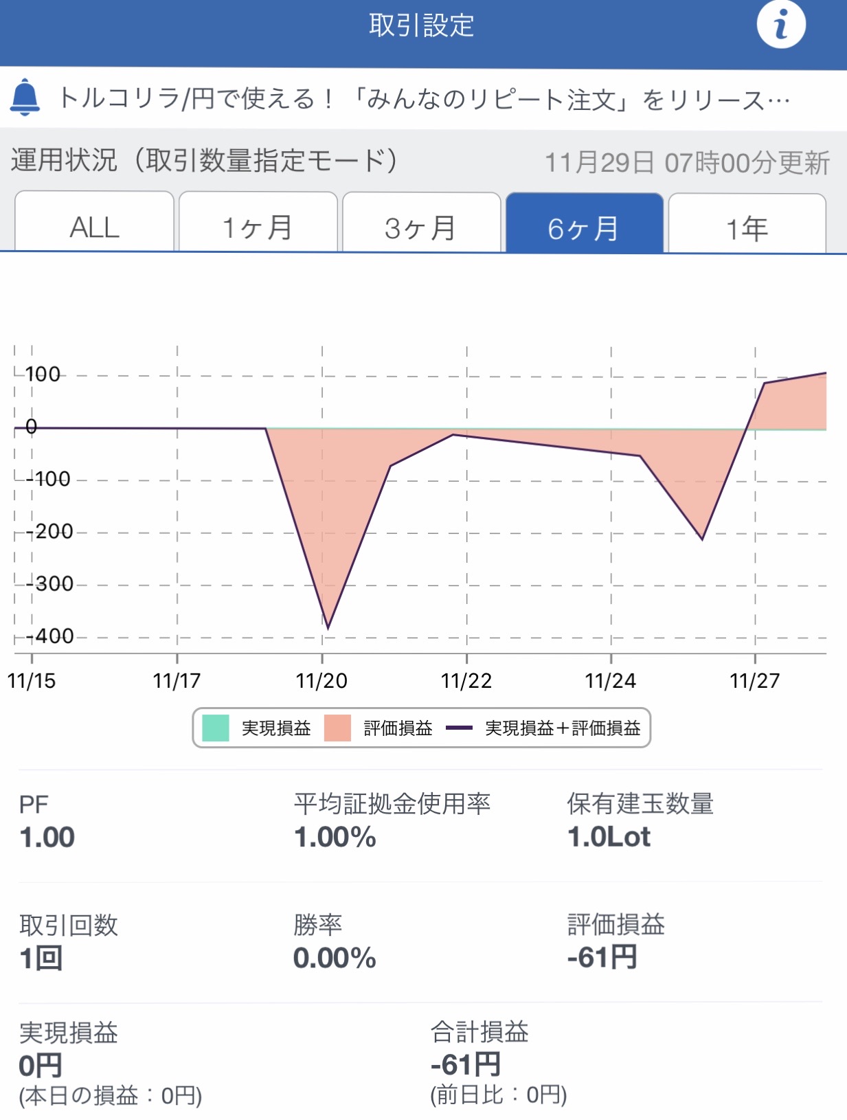 今週は、為替の動きが少なく、あまり利益が出ませんでした。